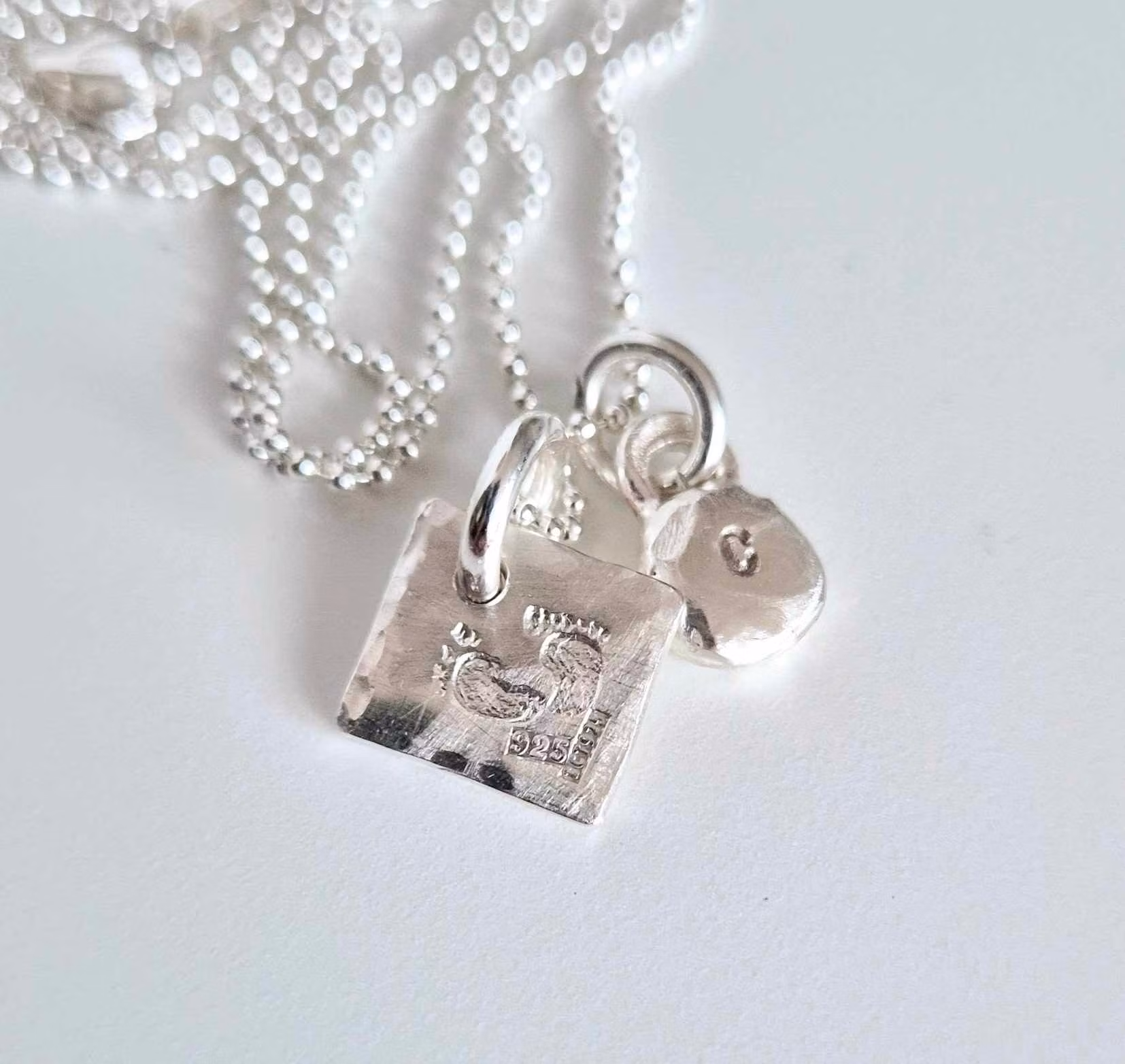 Babyfeet - en fin handgjord berlock med en babyfötter, perfekt som doppresent.