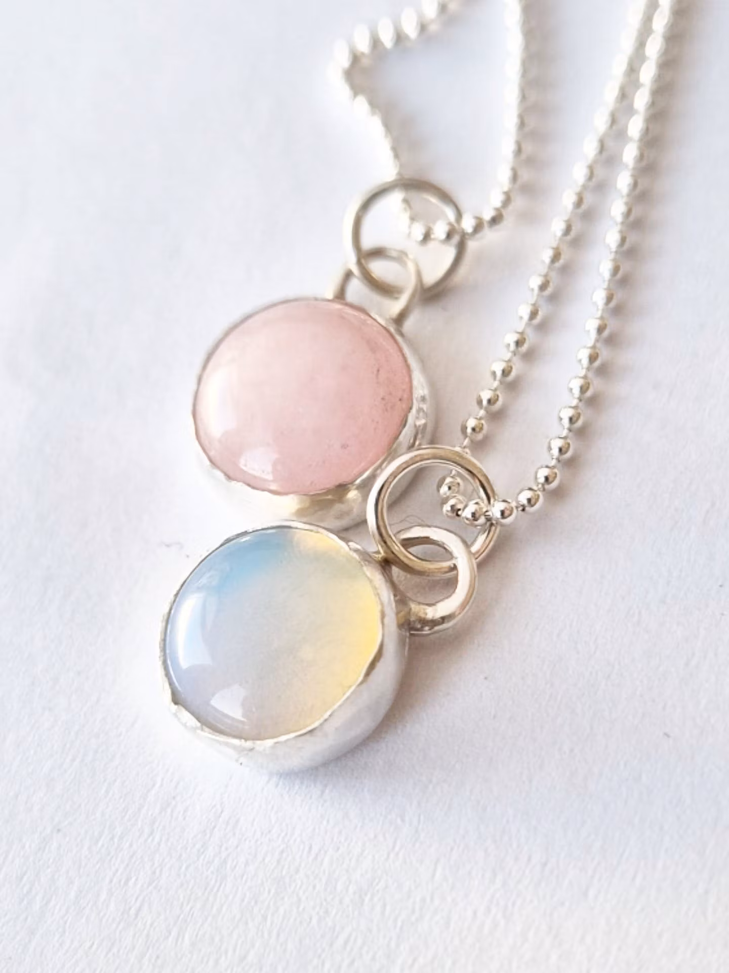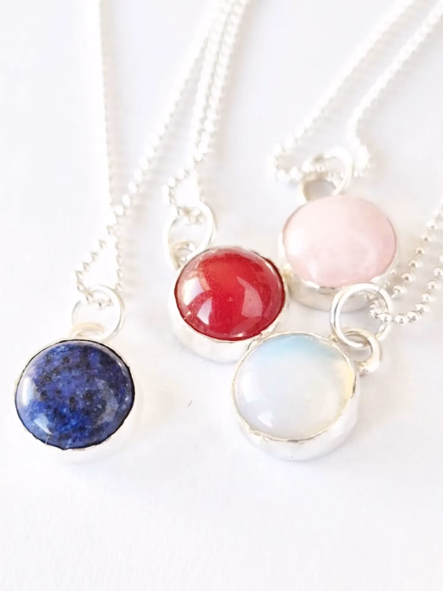 Candy halsband, stenar infattade i äkta silver. Här är det en månstensfärgad sten. Den skiftar mycket i färg, från vitmjölkig till turkosaktig.