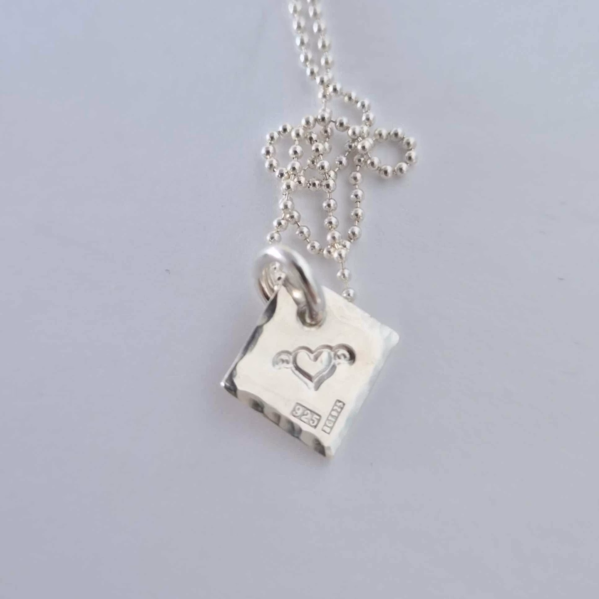 Freedom är en fin handgjord silverberlock med ett bevingat hjärta på en silverbricka, romb.