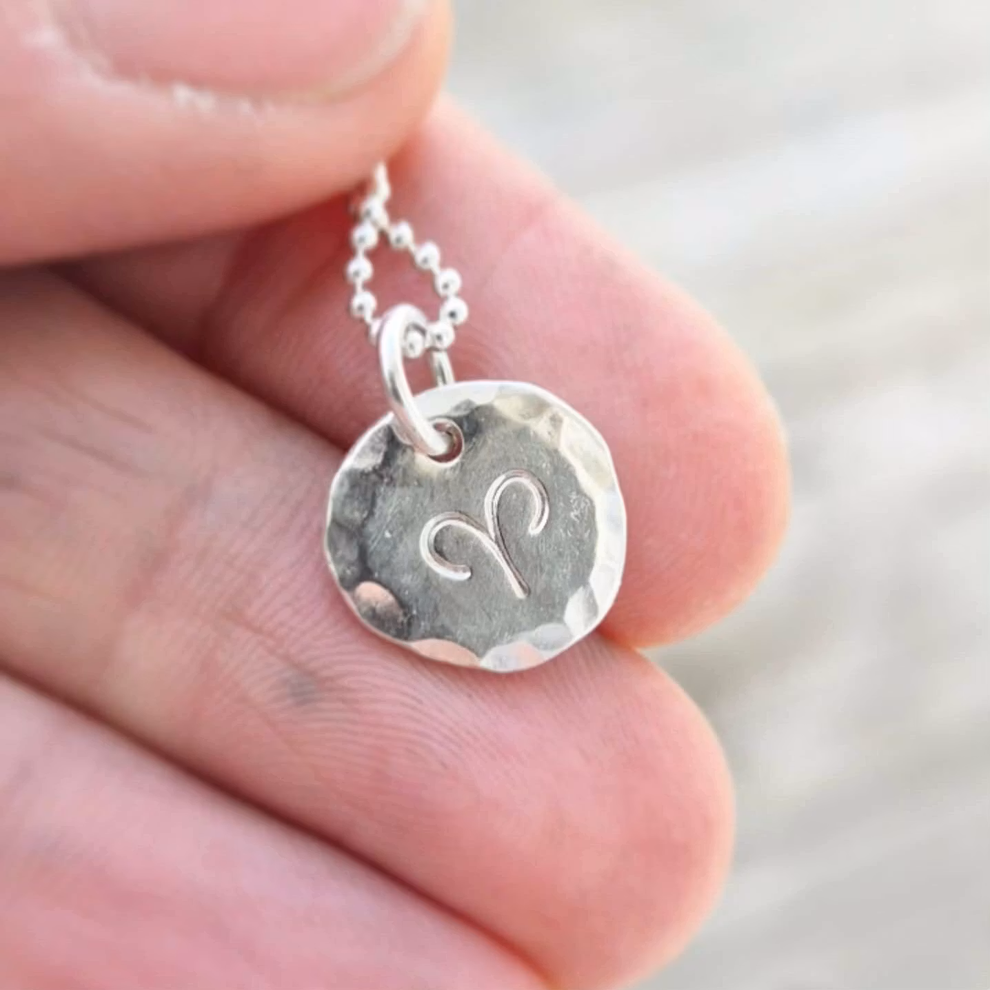 Ett fint och handgjort hänge med stjärntecknet för väduren i återbrukat silver.