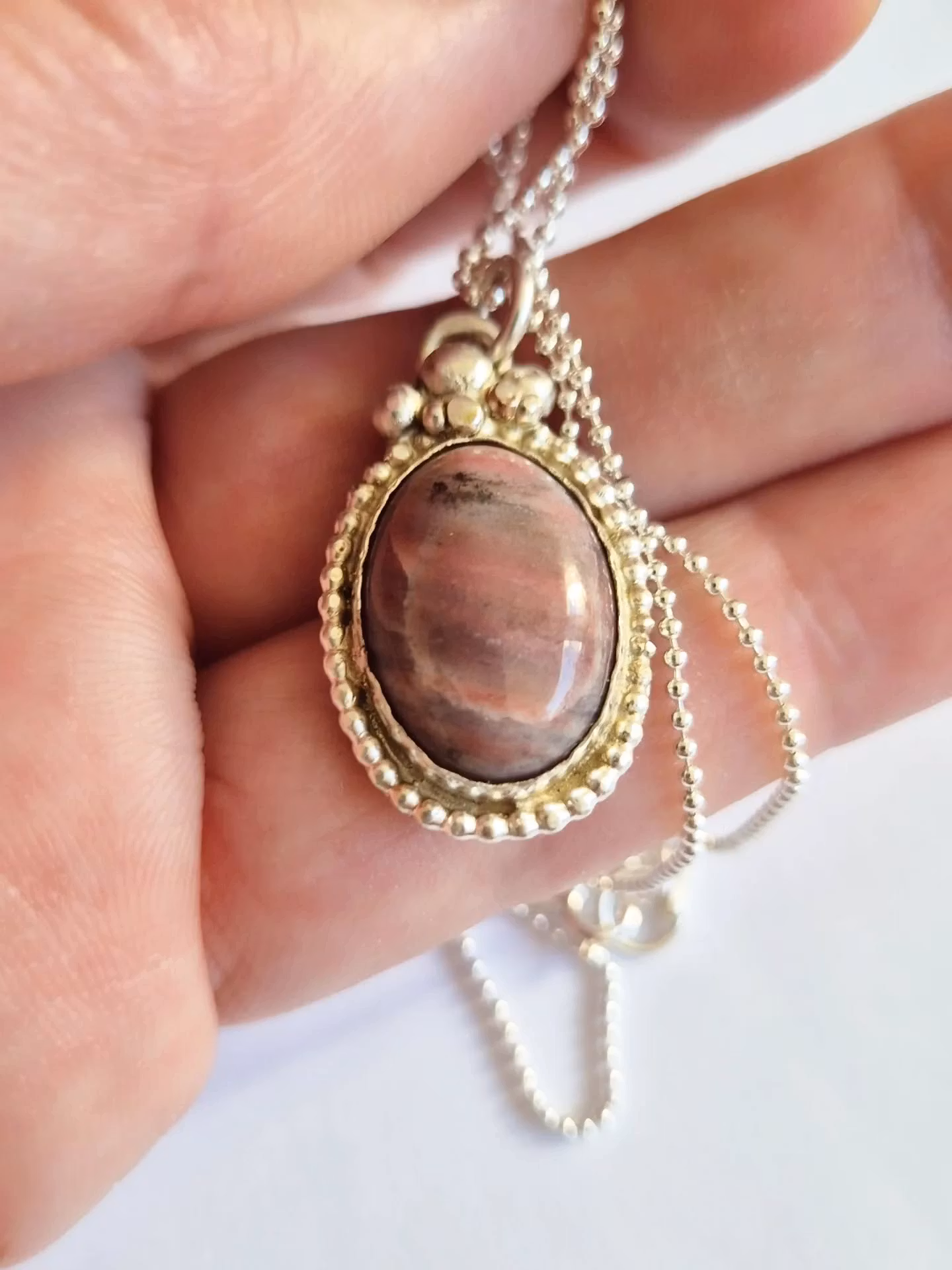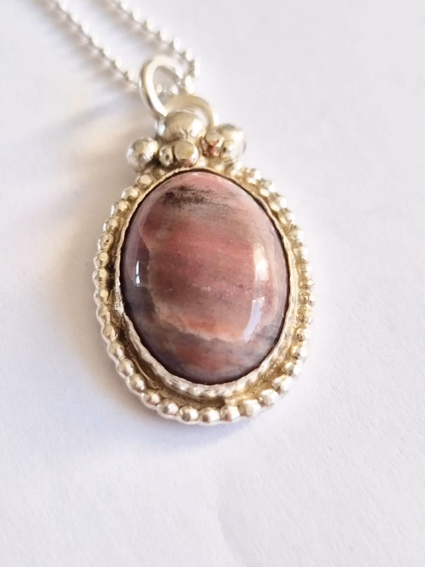 Rosa grå oval agat infattad i äkta silver
