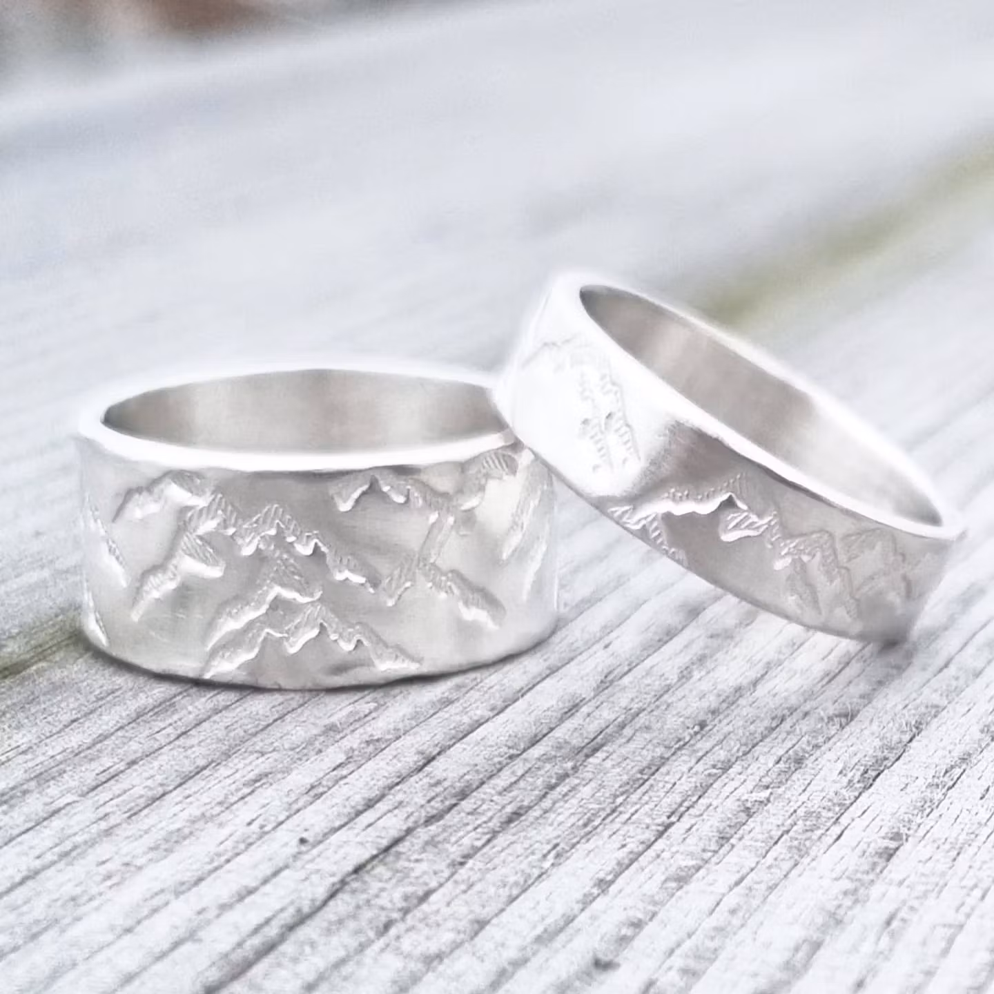 Fjällen är en mellanbred fin handgjord silverring med fjäll och berg.